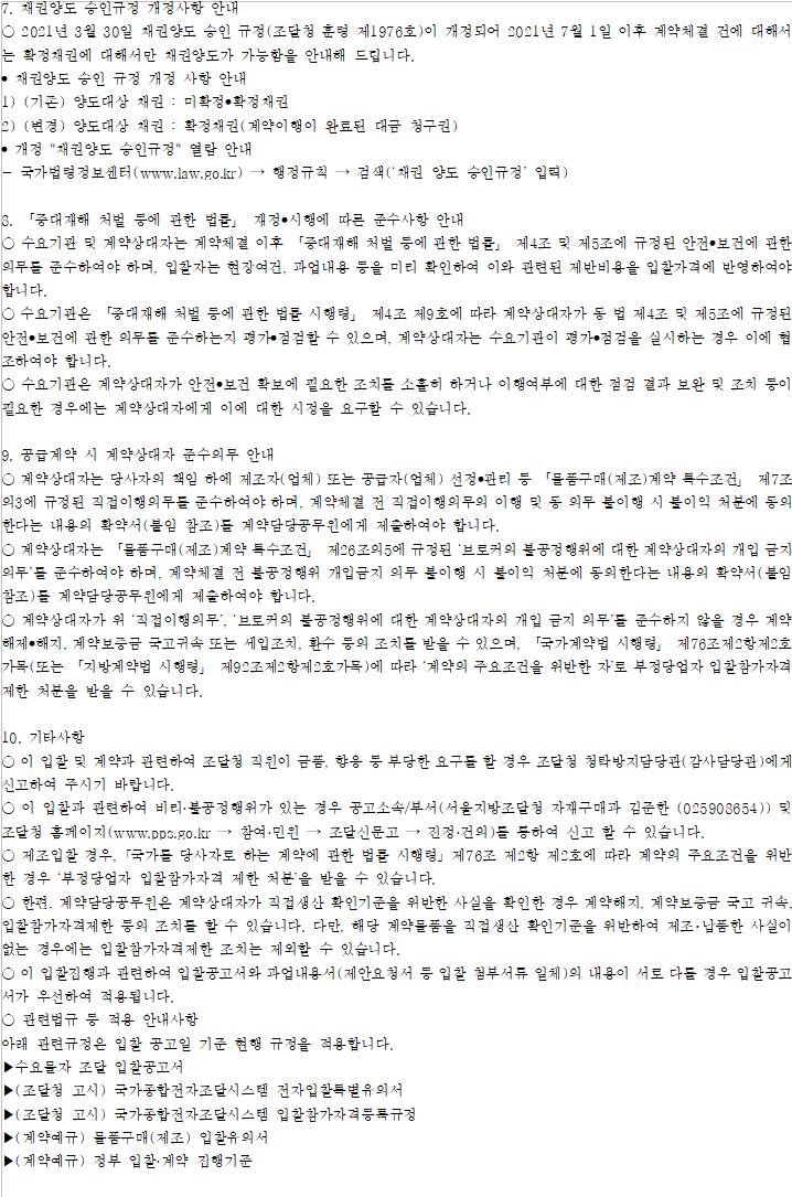 이전인 경우 낙찰자 결정대상에서 제외하거나 결정통보를 취소하며, 계약체결이후인 경우 계약을 해제(해지) 할 수 있으니 유의하시기 바랍니다.