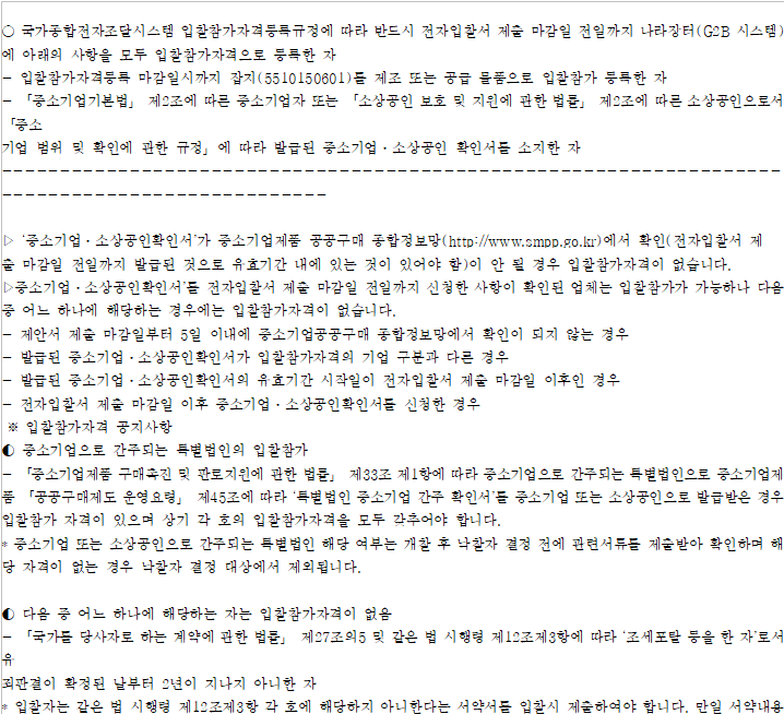 물품분류 10자리로 입찰참가 제한함