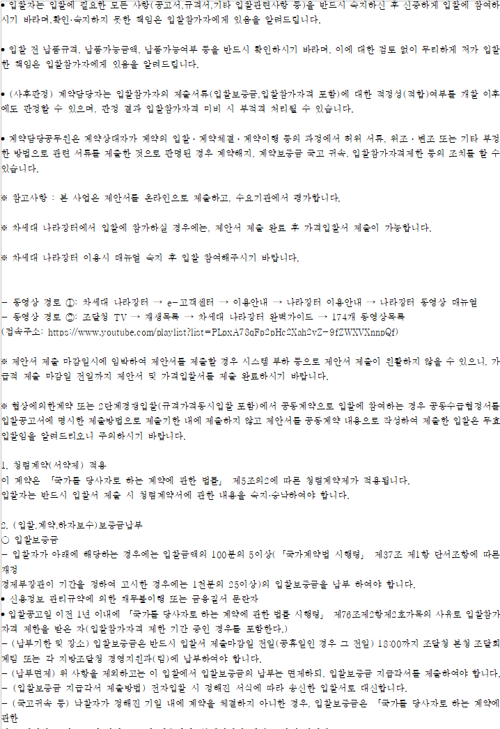기타 세부사항은 전자입찰 공고서에 첨부된 과업내용서, 내역서 등을 반드시 확인하시기 바랍니다.