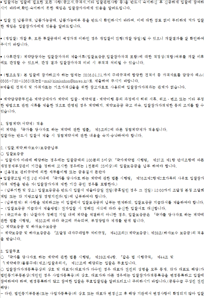 다. 이 입찰과 관련하여 추가 문의사항이 있으면 아래 담당자에게 연락하시기 바랍니다.
