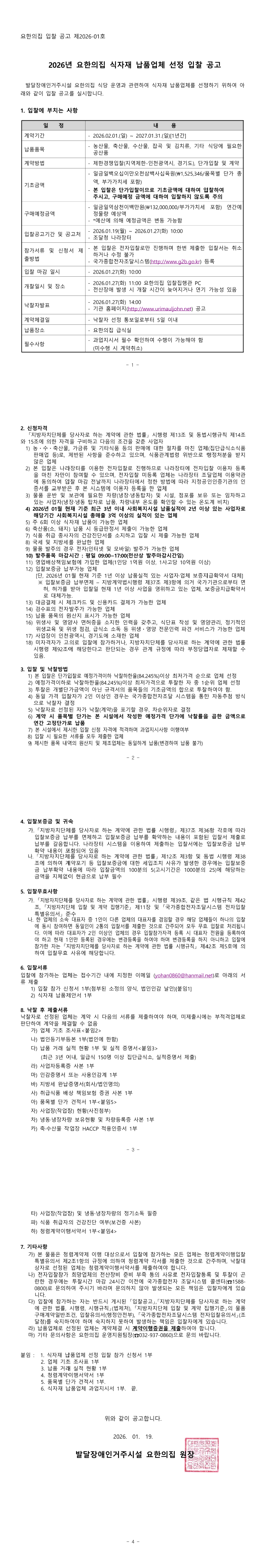 2026년 요한의집 식자재 납품업체 선정 입찰 공고 |