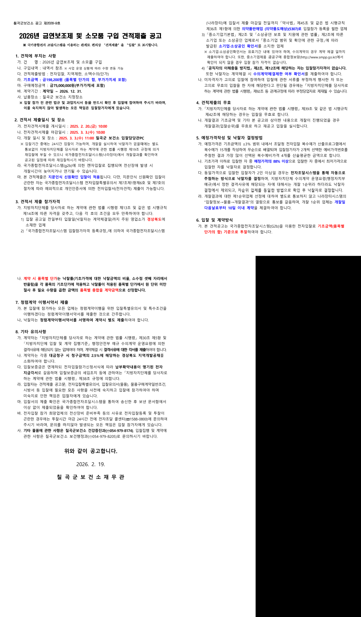 2026년도 금연보조제 및 소모품 구입 견적제출 공고 |