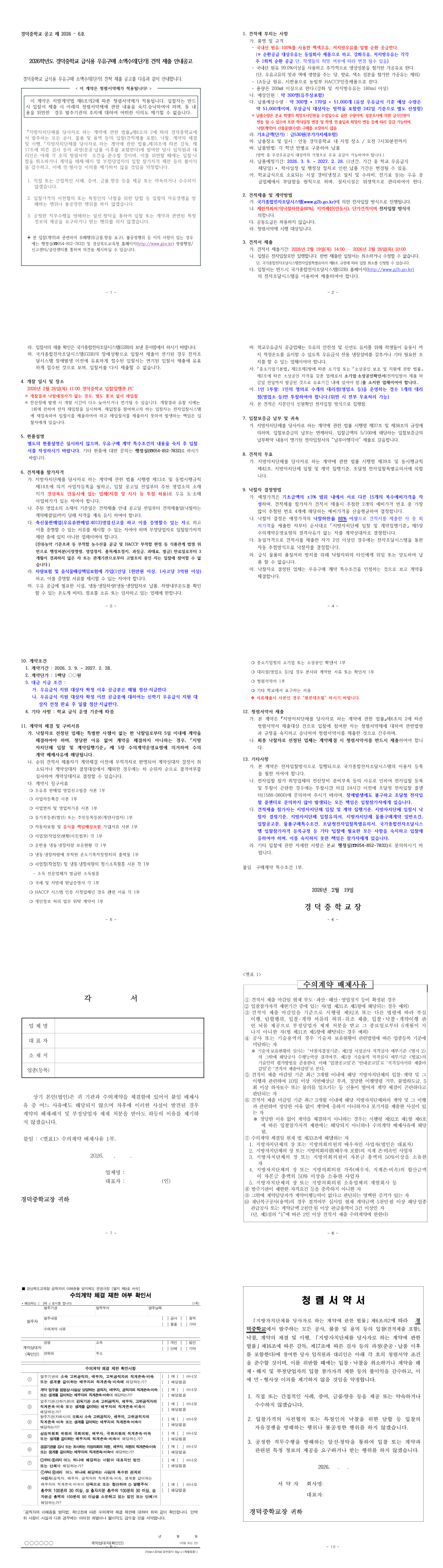 2026학년도 경덕중학교 급식용 우유구매 소액수의[단가] 견적 제출 안내공고 |