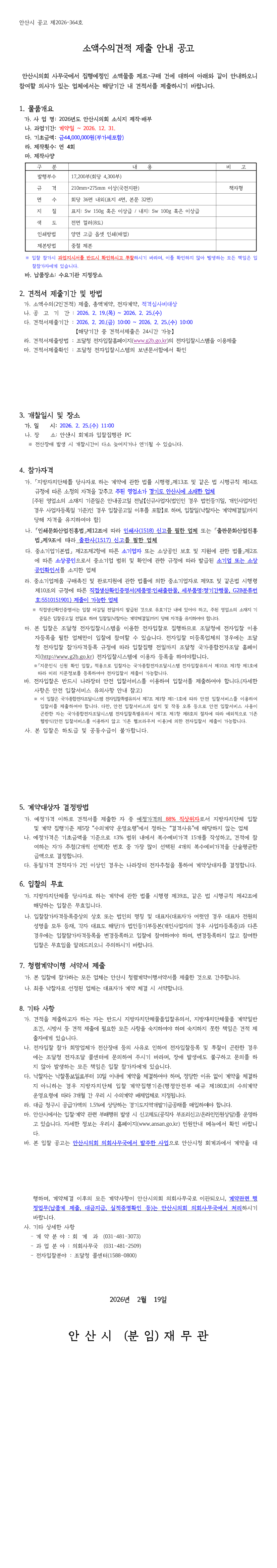 2026년도 안산시의회 소식지 제작·배부 |