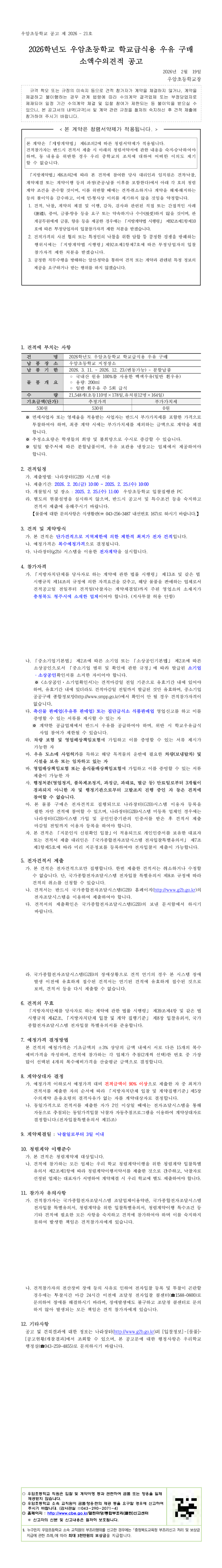 2026학년도 우암초등학교 학교급식용 우유구매 소액수의 견적공고 |