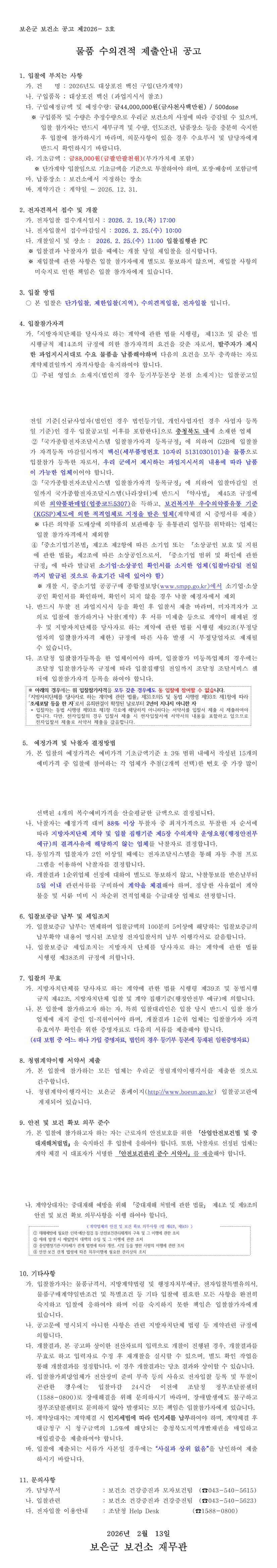 2026년도 보건소 대상포진 백신구입 입찰공고 |