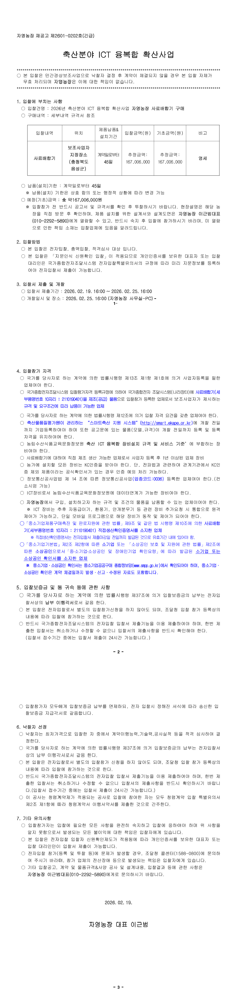2026년 축산분야 ICT 융복합 확산사업 자영농장 사료배합기 구매 |