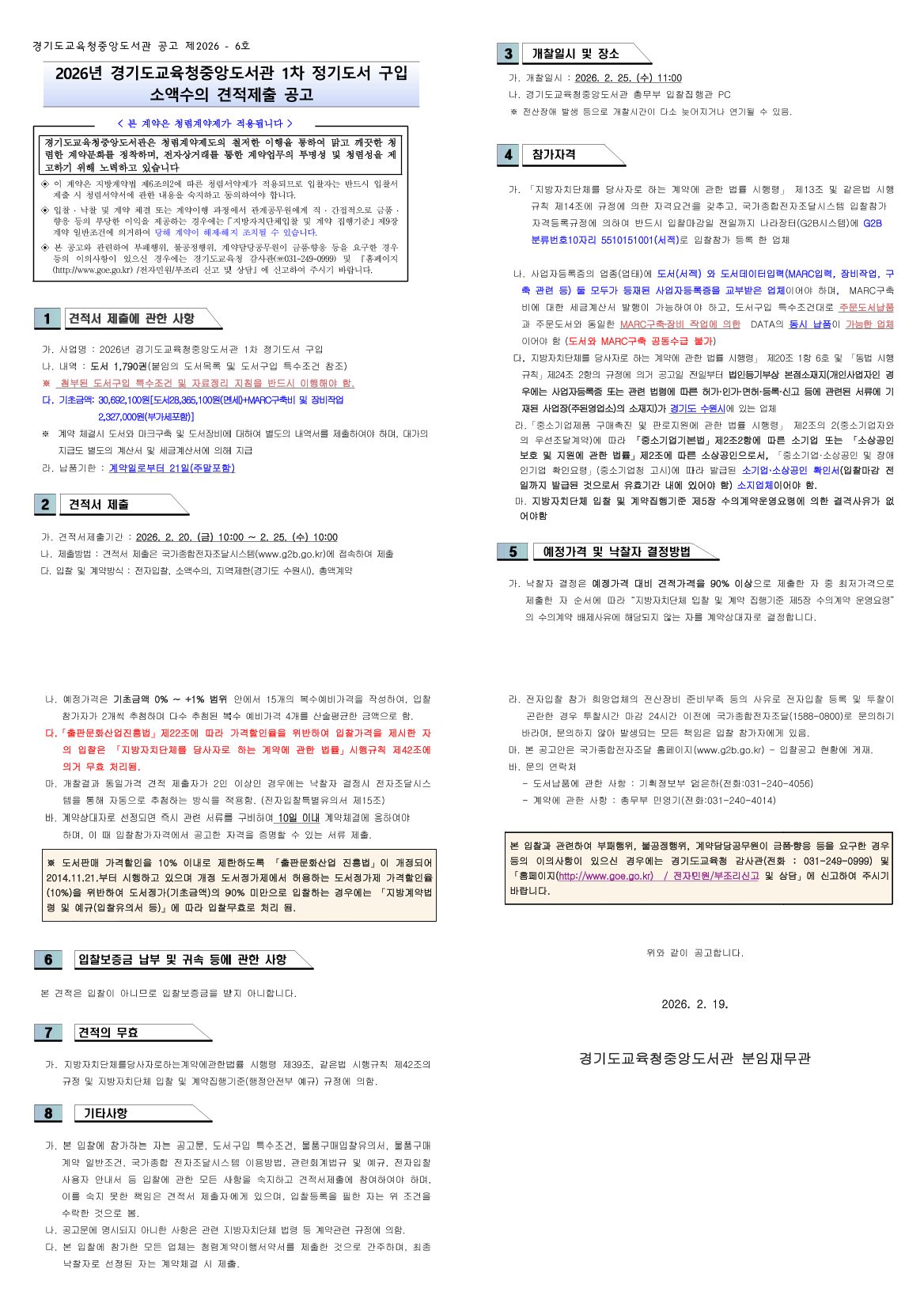 2026년 경기도교육청중앙도서관 1차 정기도서 구입 소액수의 견적제출 공고 |
