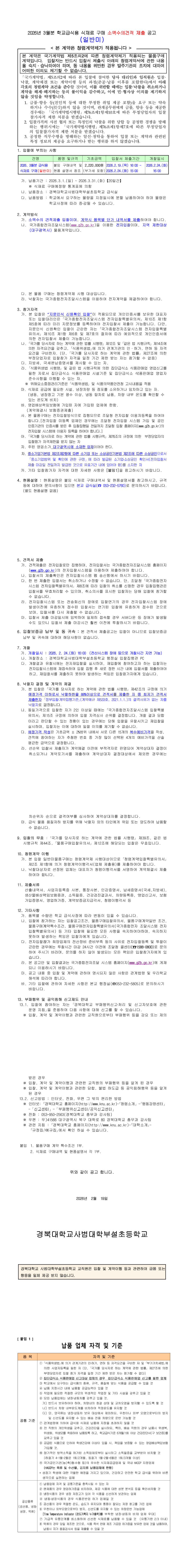 2026년 3월분 경북대학교사범대학부설초등학교 식재료(일반미) 구매 소액수의 입찰 공고 |
