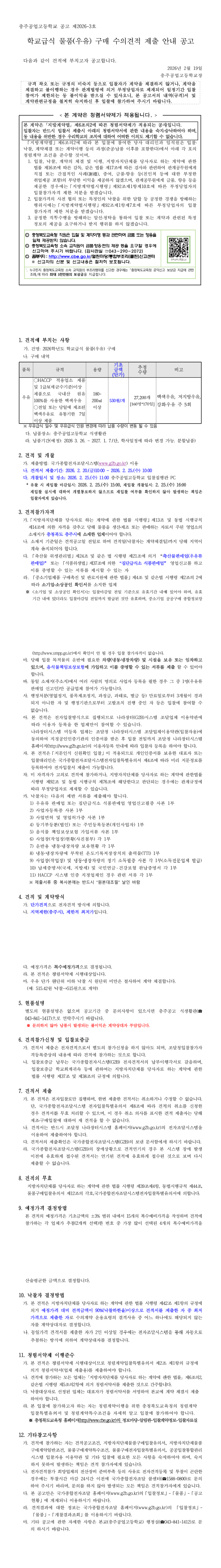 2026학년도 충주공업고 학교급식용 물품(우유) 구매 소액수의(단가) 견적 제출 안내 공고 |