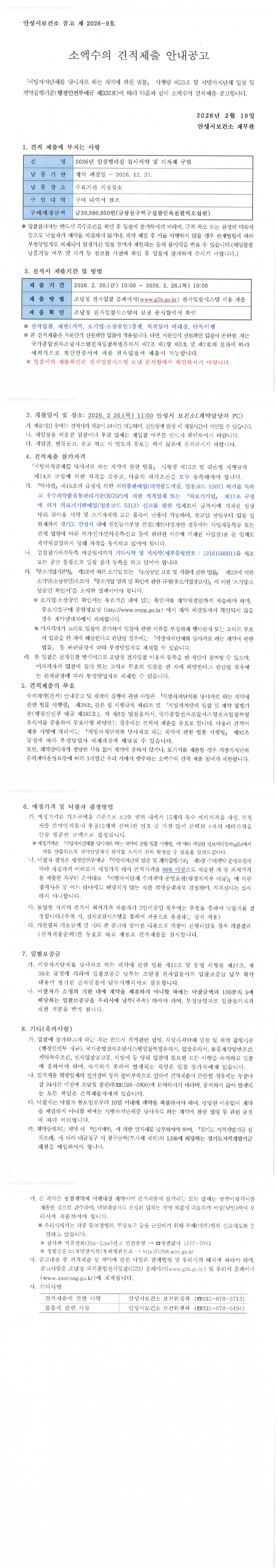 소액수의 견적제출 안내 공고(2026년 임상병리실 검사시약 및 기자재 구입) |
