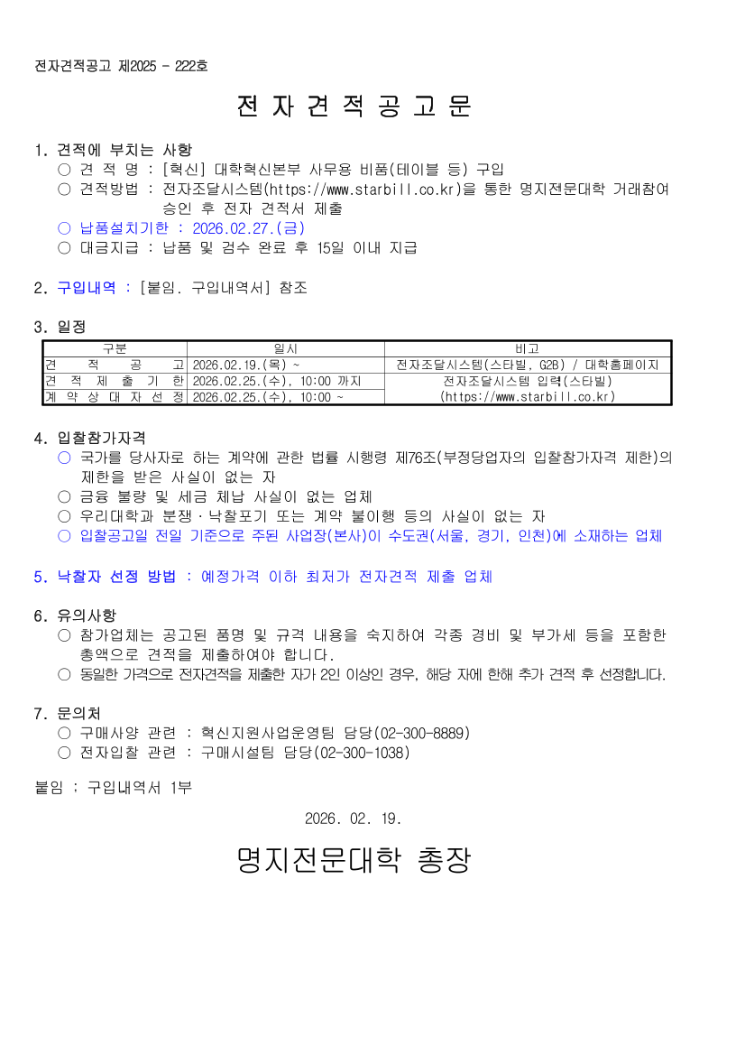 [혁신] 대학혁신본부 사무용 비품(테이블 등) 구입 |