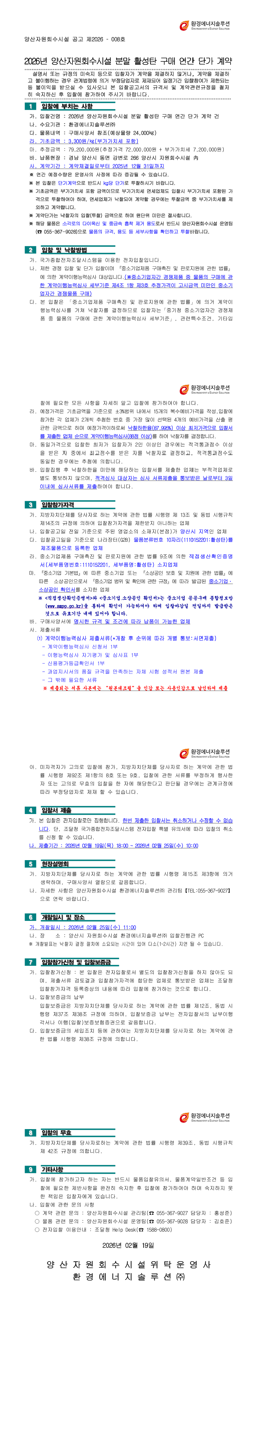 2026년 양산자원회수시설 분말 활성탄 구매 연간 단가 계약 |