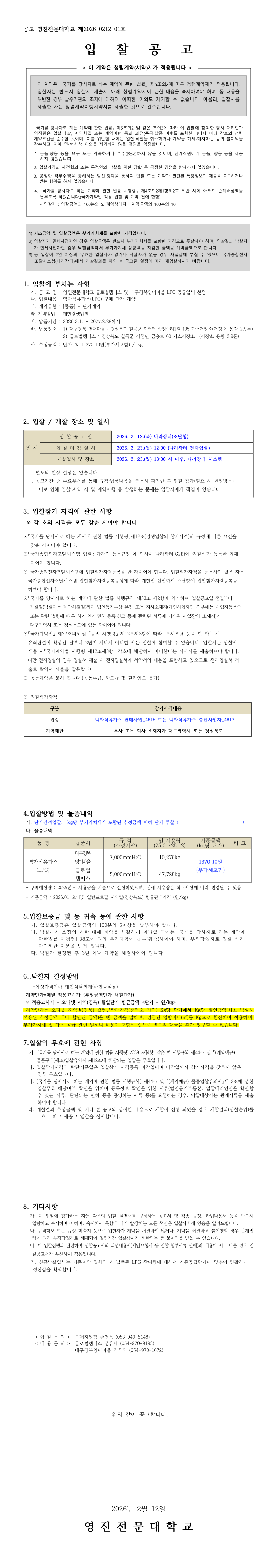 영진전문대학교 글로벌캠퍼스 및 대구경북영어마을 액화석유가스 공급 단가 계약 |