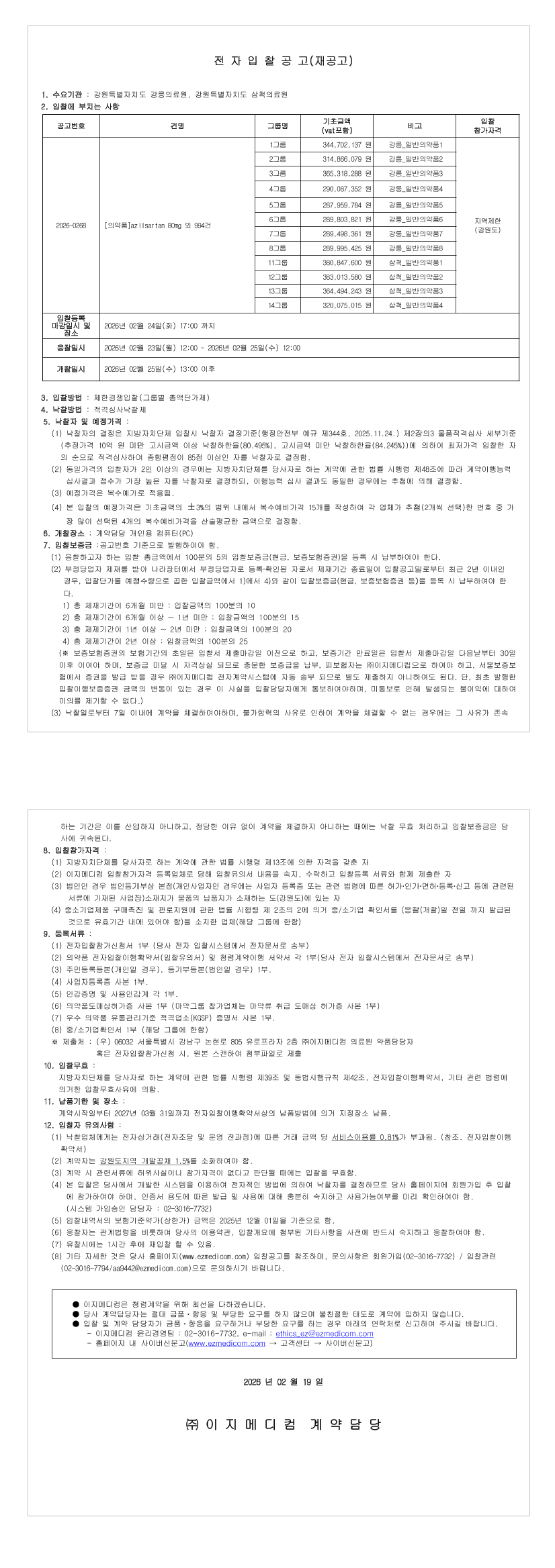 2026년 강원도내의료원(강릉,삼척의료원) 정규 의약품 공동 구매 입찰 공고 |
