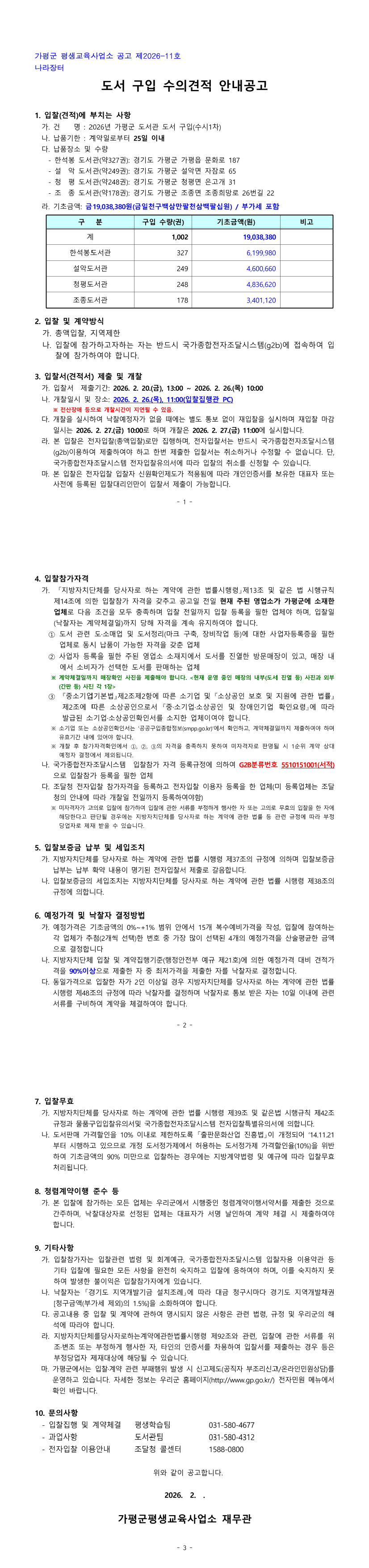 2026년 가평군 도서관 도서구입(수시1차) |