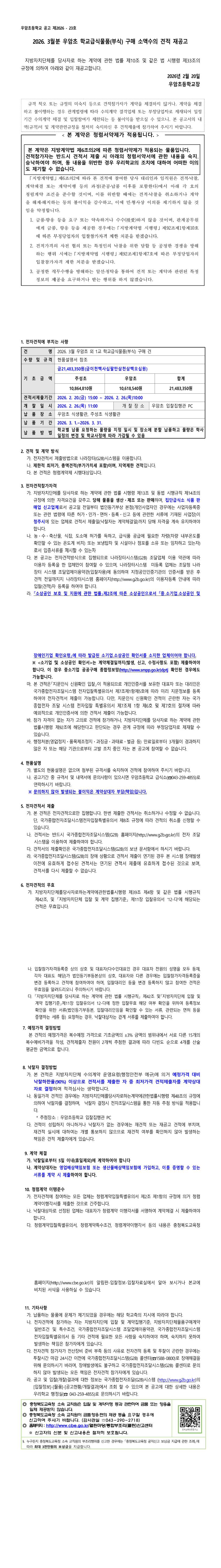 2026.3월분 우암초 외 1교 학교급식물품(부식)소액수의계약 견적 재공고 |