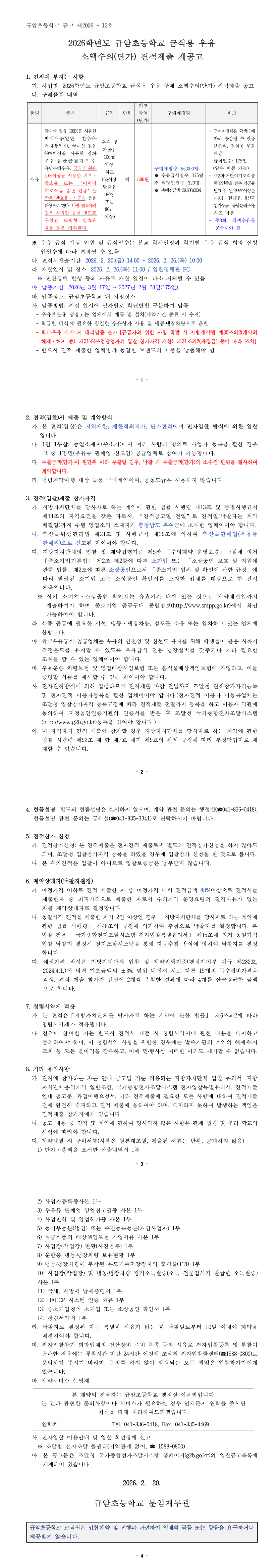2026학년도 규암초등학교 급식용 우유 소액수의(단가) 견적제출 재공고 |