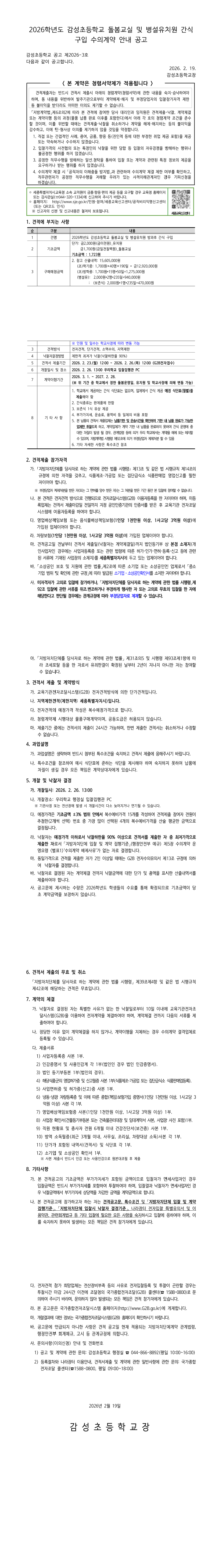 2026학년도 돌봄교실 및 병설유치원 간식 2인 소액수의 제출 공고 |