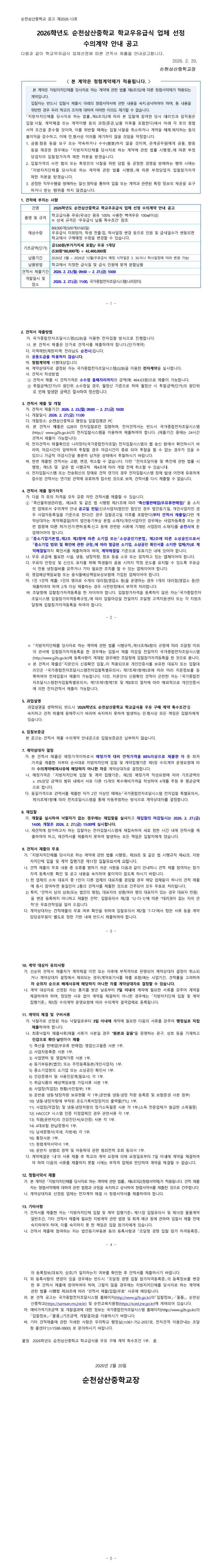 2026학년도 순천삼산중학교 학교우유급식 업체선정 수의계약 안내 공고 |