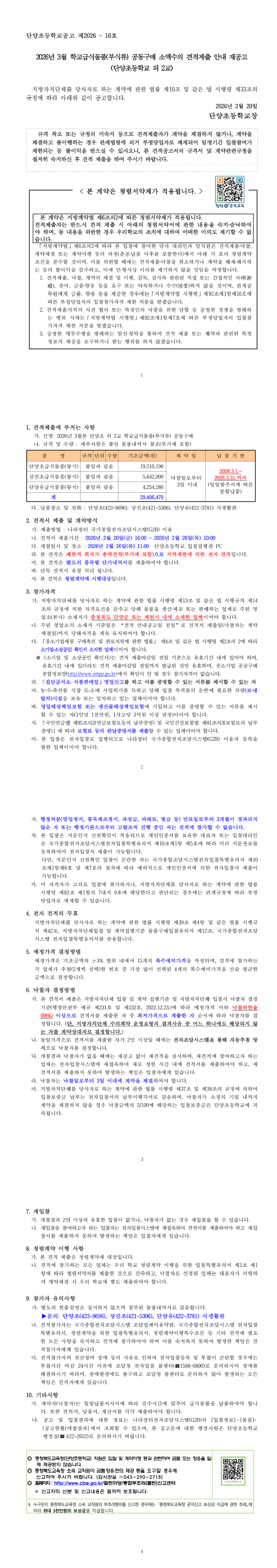 2026년 3월 단양초 외 2교 급식물품(부식) 공동구매 소액수의 견적 재공고 |