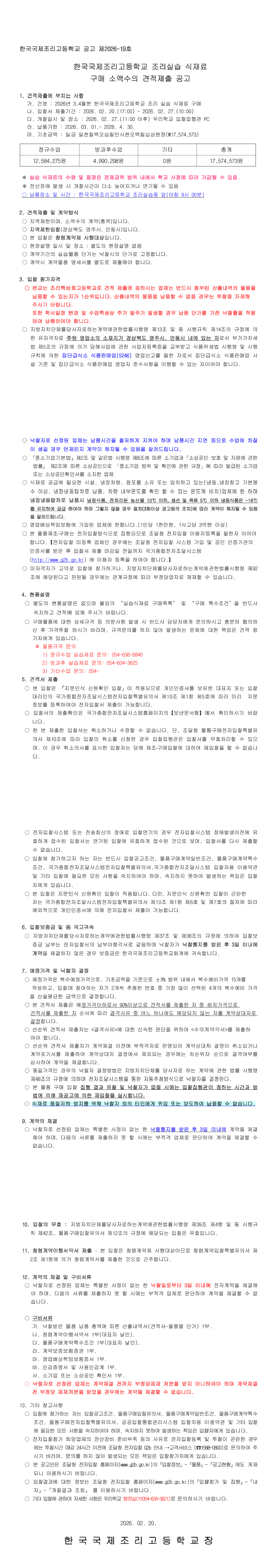 한국국제조리고등학교 3,4월분 조리실습 식재료 구매 소액수의 견적 제출 공고 |