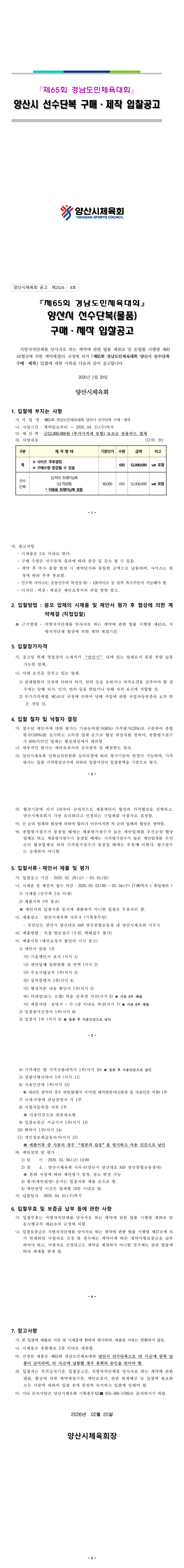 제65회 경상남도민체육대회 양산시 선수단복 입찰 공고 |