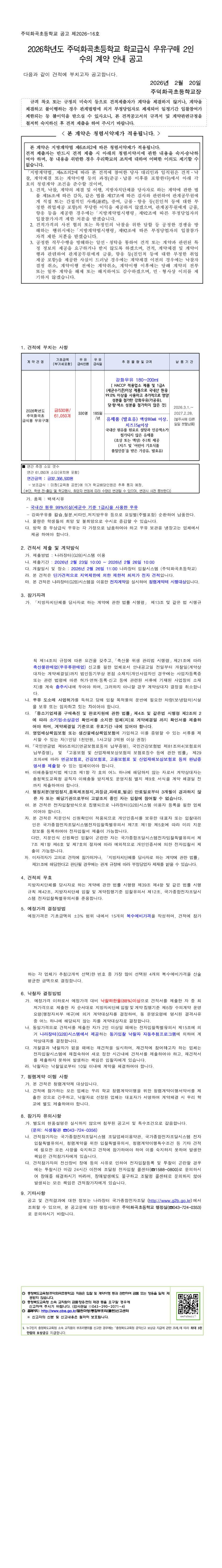 2026학년도 주덕화곡초등학교 학교급식 우유구매 2인 수의계약 안내 공고 |