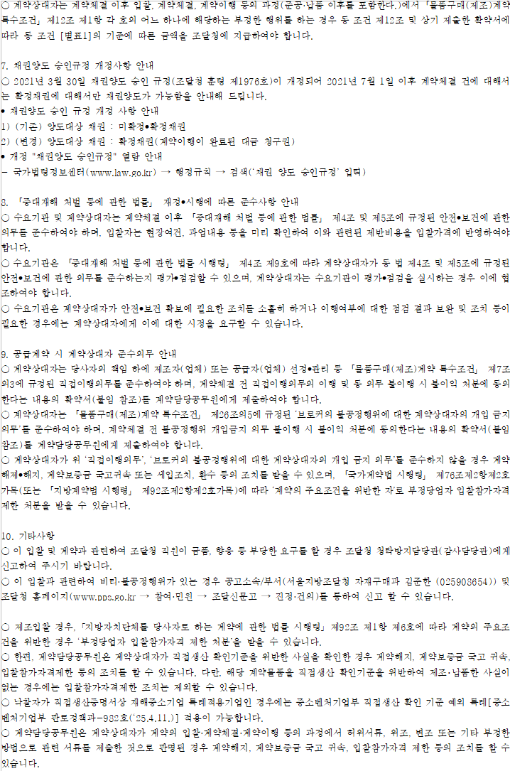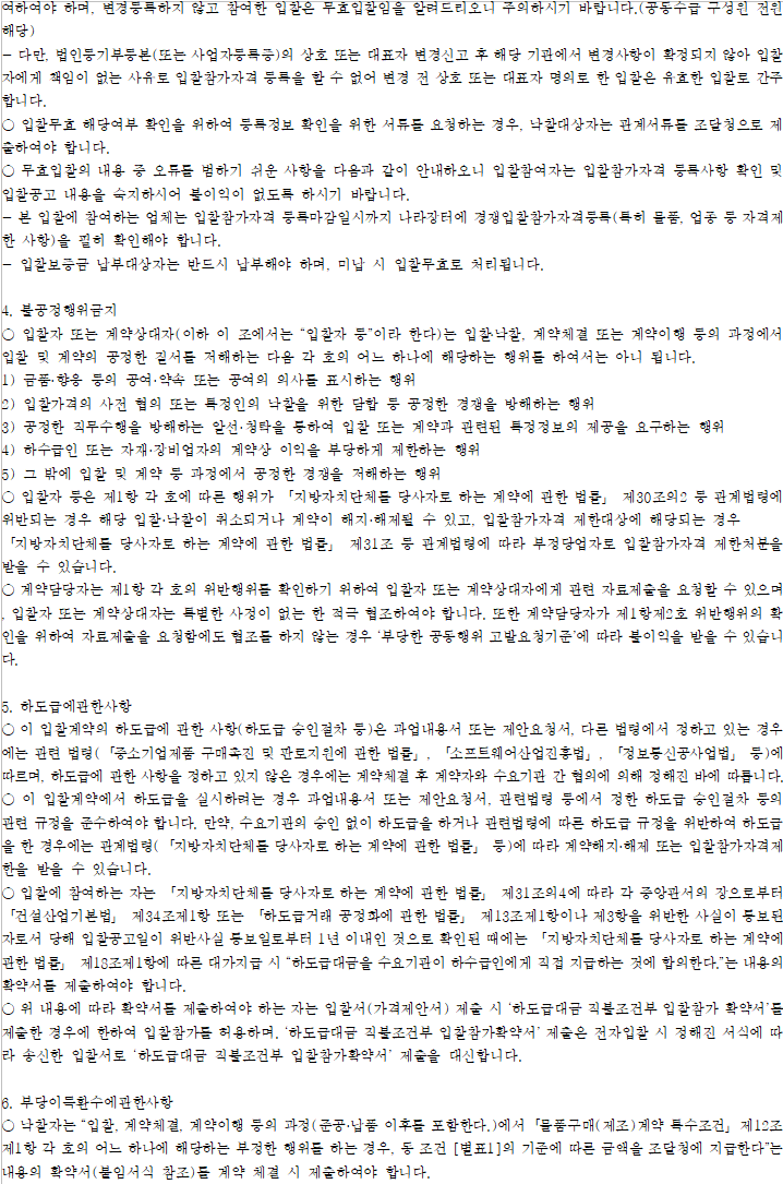 이전인 경우 낙찰자 결정대상에서 제외하거나 결정통보를 취소하며, 계약체결이후인 경우 계약을 해제(해지) 할 수 있으니 유의하시기 바랍니다.