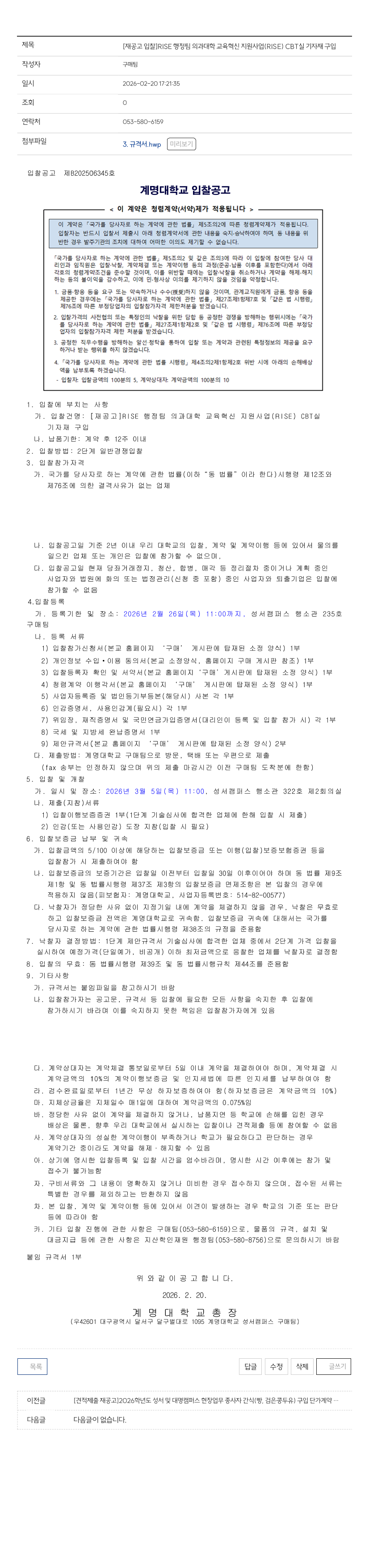 RISE 행정팀 의과대학 교육혁신 지원사업(RISE) CBT실 기자재 구입 |