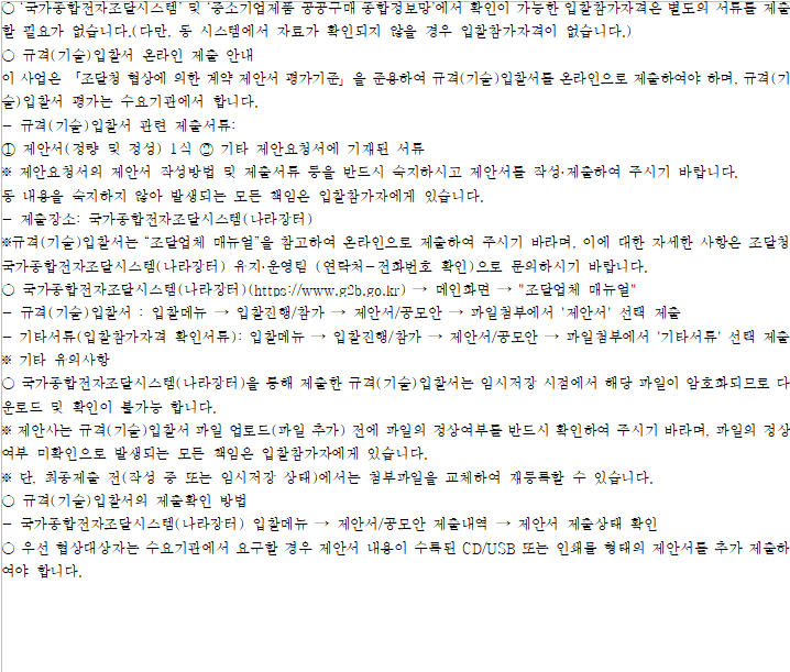 기타 세부사항은 전자입찰 공고서에 첨부된 과업내용서, 내역서 등을 반드시 확인하시기 바랍니다.