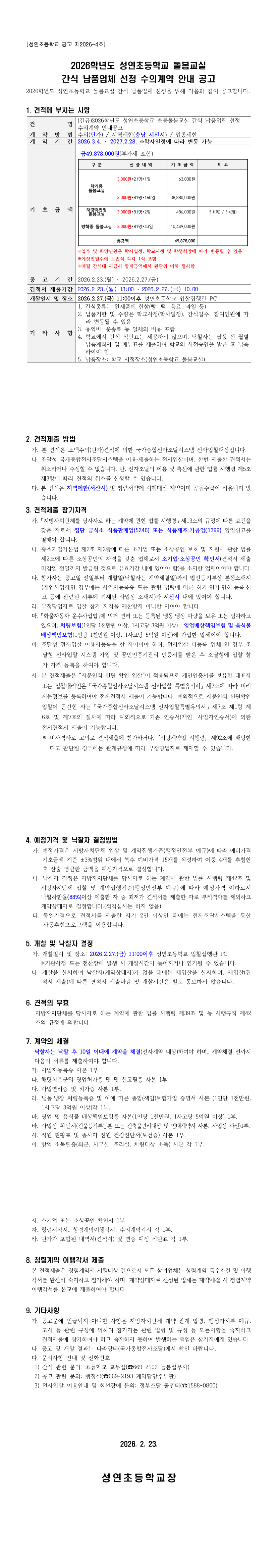 2026학년도 초등돌봄교실 간식 납품업체 선정 소액수의 견적 재공고 |