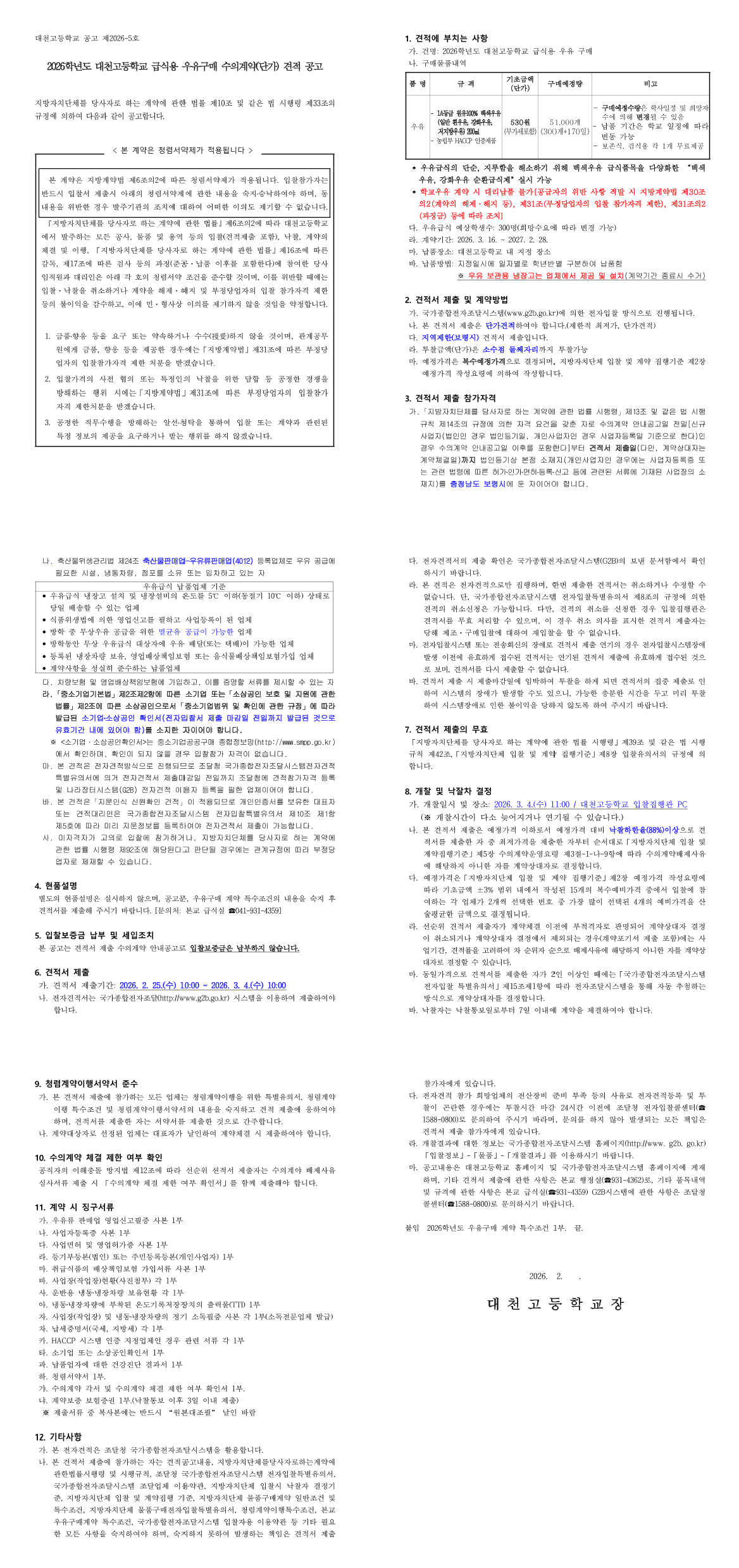 2026학년도 대천고등학교 급식용 우유구매 수의계약(단가) 견적 공고 |