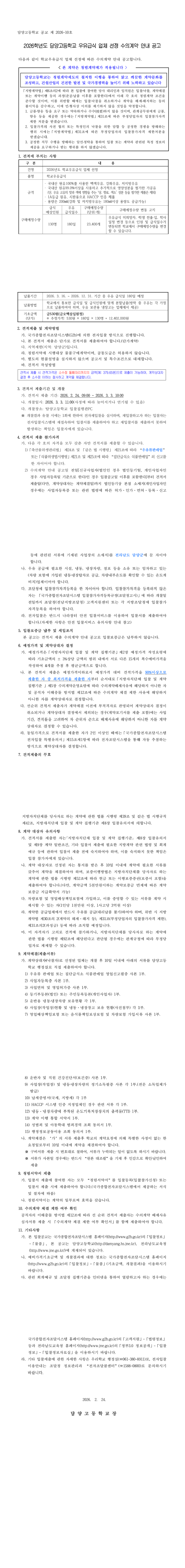 2026학년도 담양고등학교 우유급식 업체 선정 수의계약 안내 공고 |