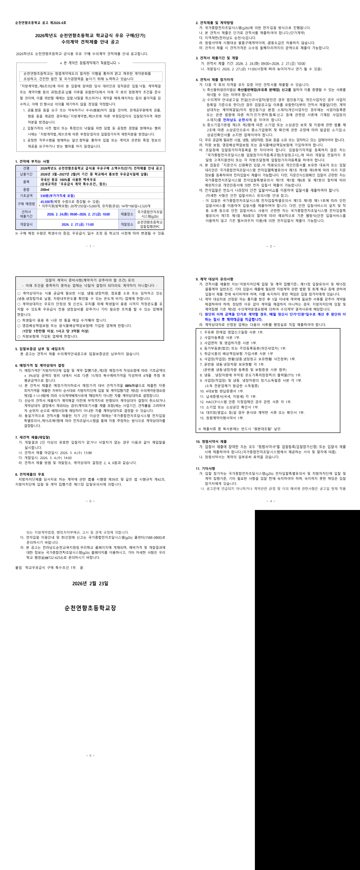 2026학년도 순천연향초등학교 학교급식 우유 구매 수의계약 견적제출 안내 공고 |