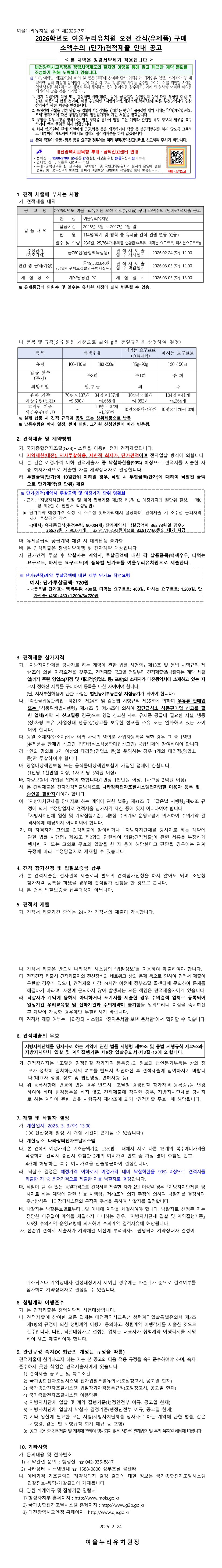 2026학년도 여울누리유치원 오전 간식(유제품) 구매 소액수의 (단가)견적제출 안내 공고 |