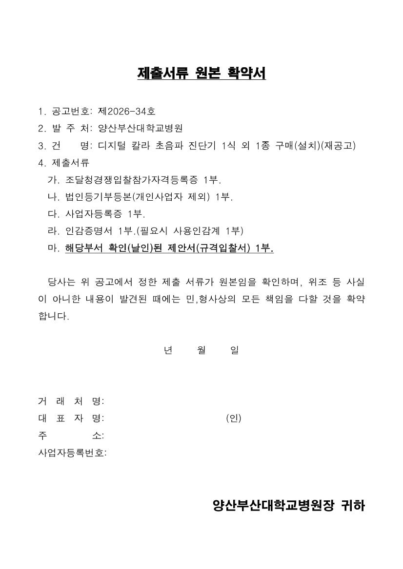 디지털 칼라 초음파 진단기 1식 외 1종 구매(설치)(재공고) |