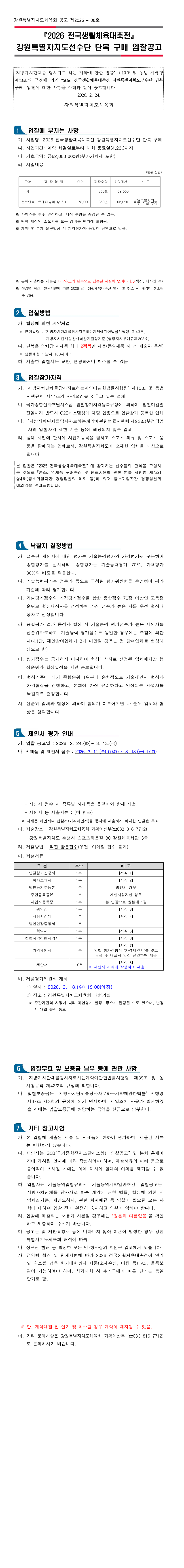 2026년 전국생활체육대축전 강원특별자치도선수단 단체복 구매 |
