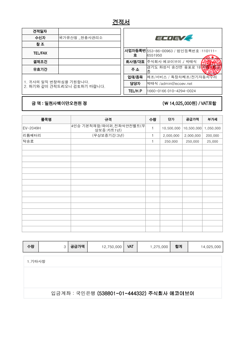 다목적운반차(에코이브이, EV-2049H, 4인승 숏테크) |