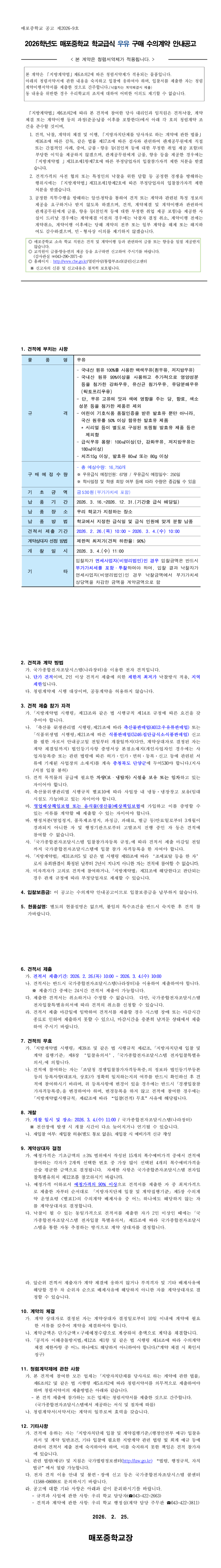 2026학년도 매포중학교 학교급식 우유 구매 수의계약 안내공고 |