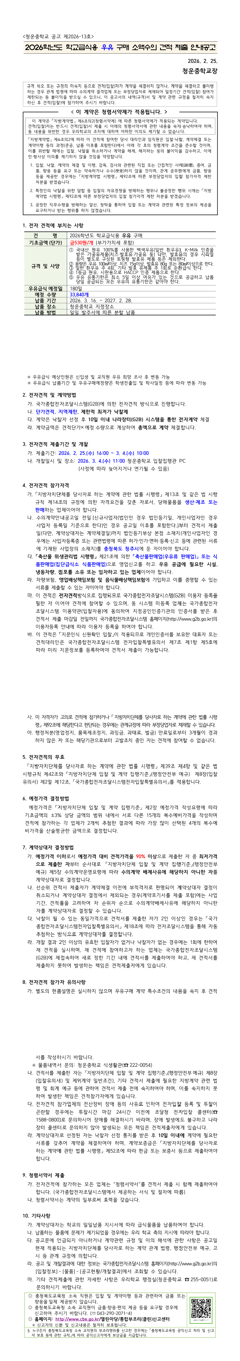 2026학년도 학교급식용 우유 구매 소액수의(단가) 견적 제출 안내공고 |