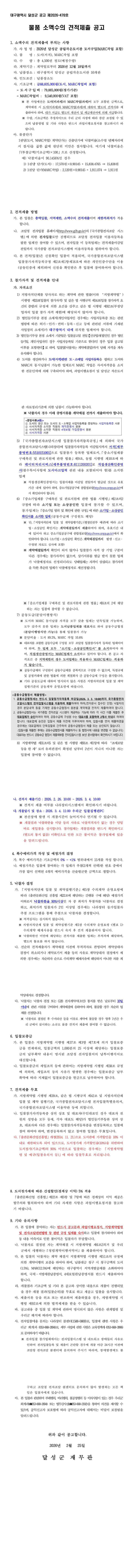 2026년 달성군 공립작은도서관 도서구입(MARC작업 포함) |