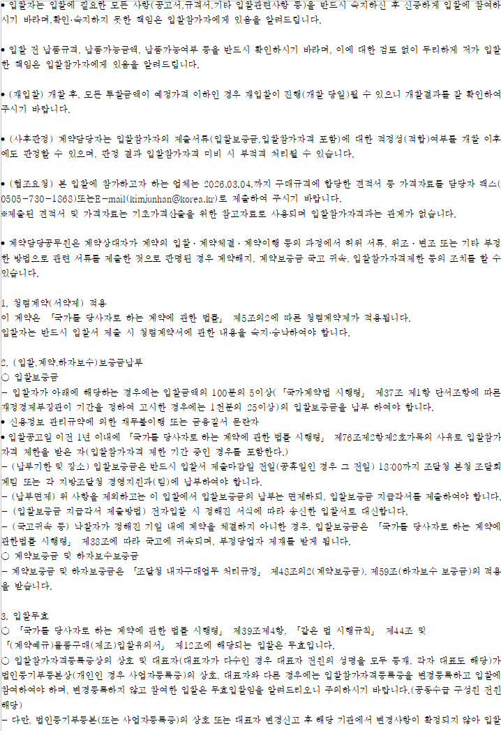 ○ 이 입찰은 「국가를 당사자로 하는 계약에 관한 법률」 제10조 제2항 제1호 및 같은 법 시행령 제42조 제1항에 따라 낙찰