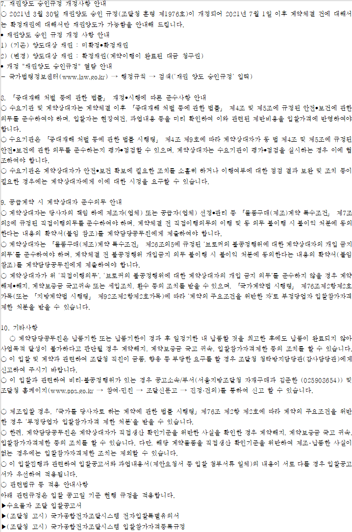 - 「국가를 당사자로 하는 계약에 관한 법률」 시행령