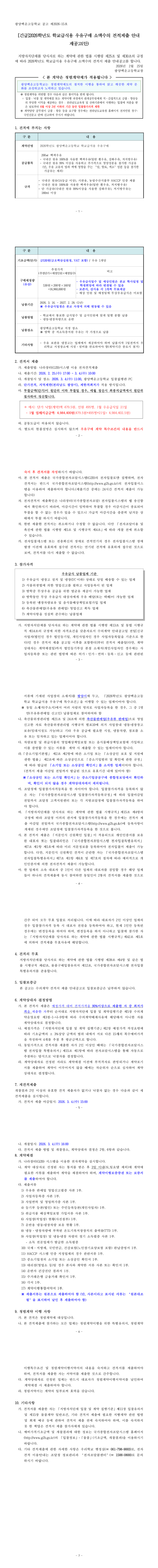 [긴급]2026학년도 광양백운고등학교 학교급식용 우유구매 소액수의 견적제출 안내공고 |