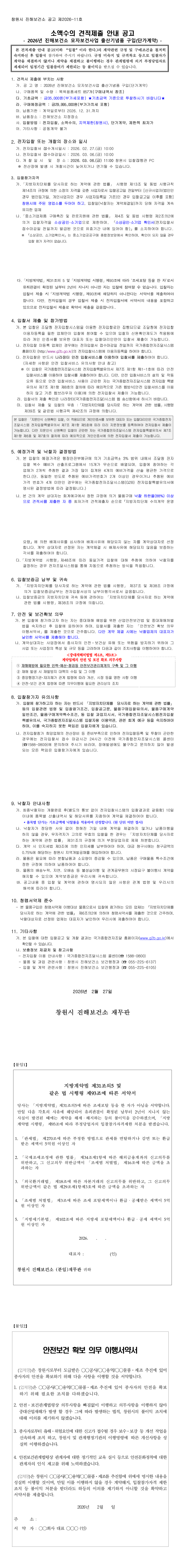 소액수의 견적제출 안내 공고-2026년 진해보건소 모자보건사업 출산기념품 구입(단가계약) |