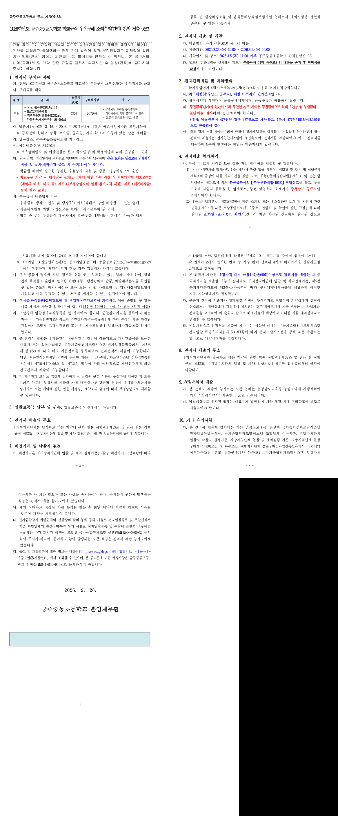 2026학년도 공주중동초등학교 학교급식 우유구매 소액수의(단가) 견적 제출 공고 |