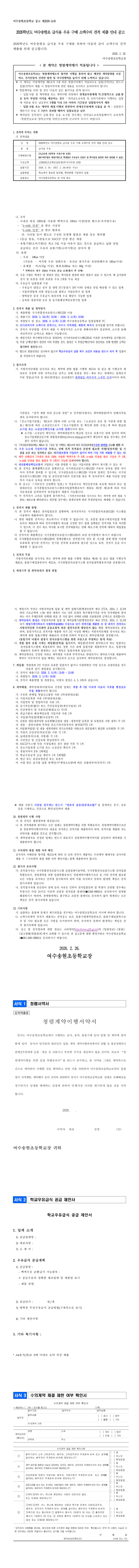 2026학년도 여수송현초 급식용 우유 구매 소액수의 견적 제출 안내 공고 |