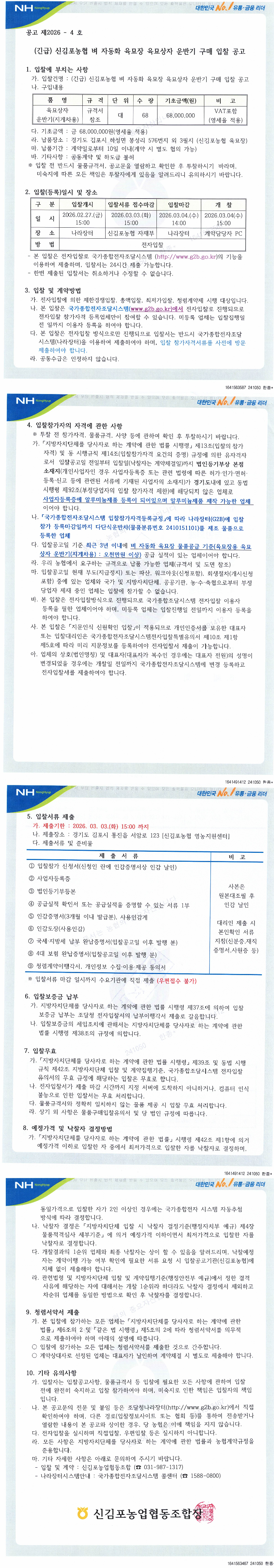 신김포농협 농산물 육묘장 육묘상자 운반기 구매 입찰 공고 |