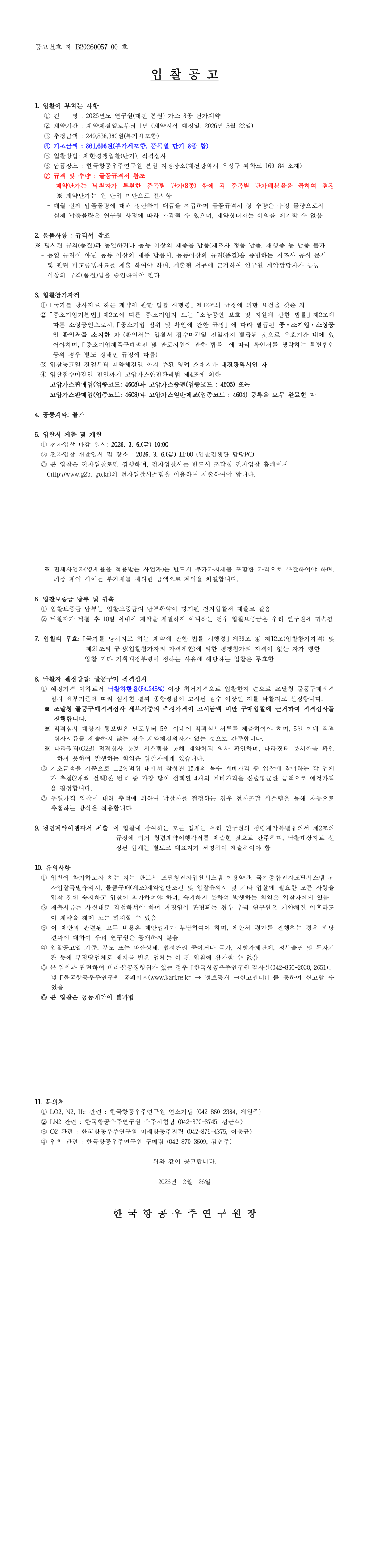 2026년도 연구원(대전 본원) 가스 8종 단가계약 |